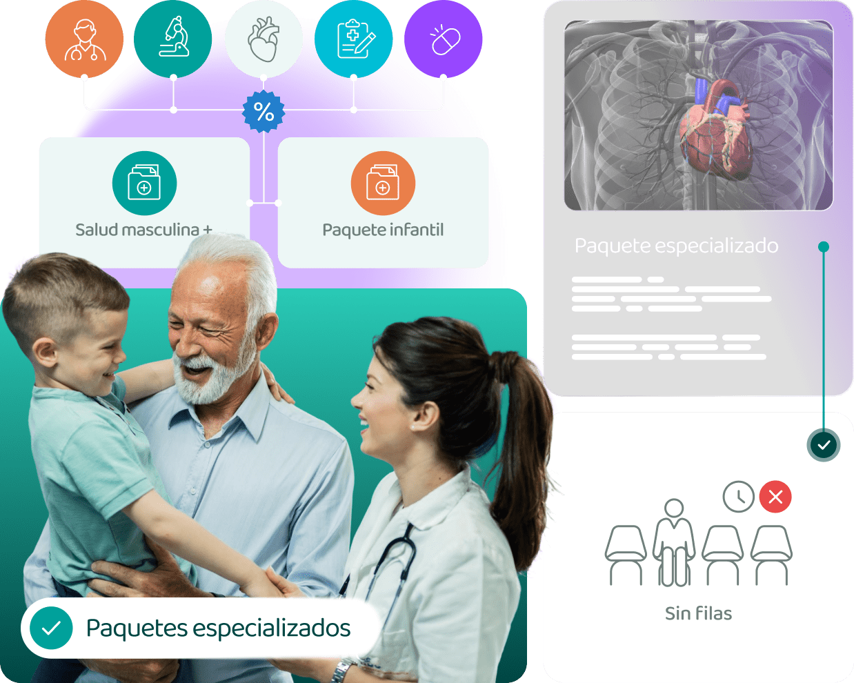 Consulta médica, ayudas diagnósticas, especialidades, subespecialidades y farmacia en una misma red de atención, sin complicaciones.
